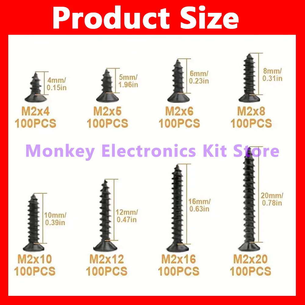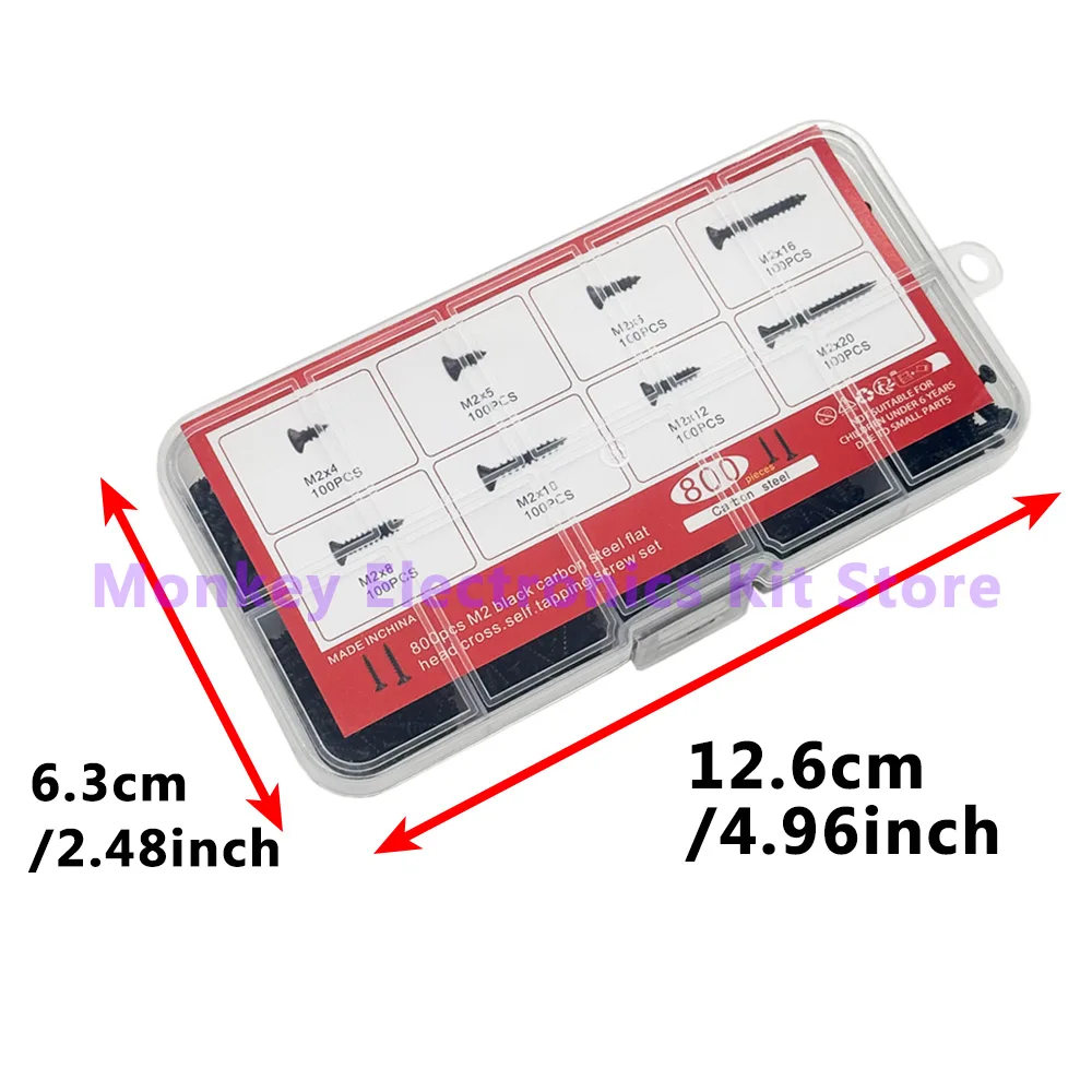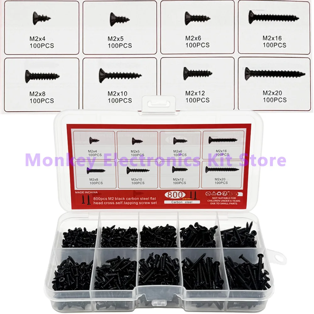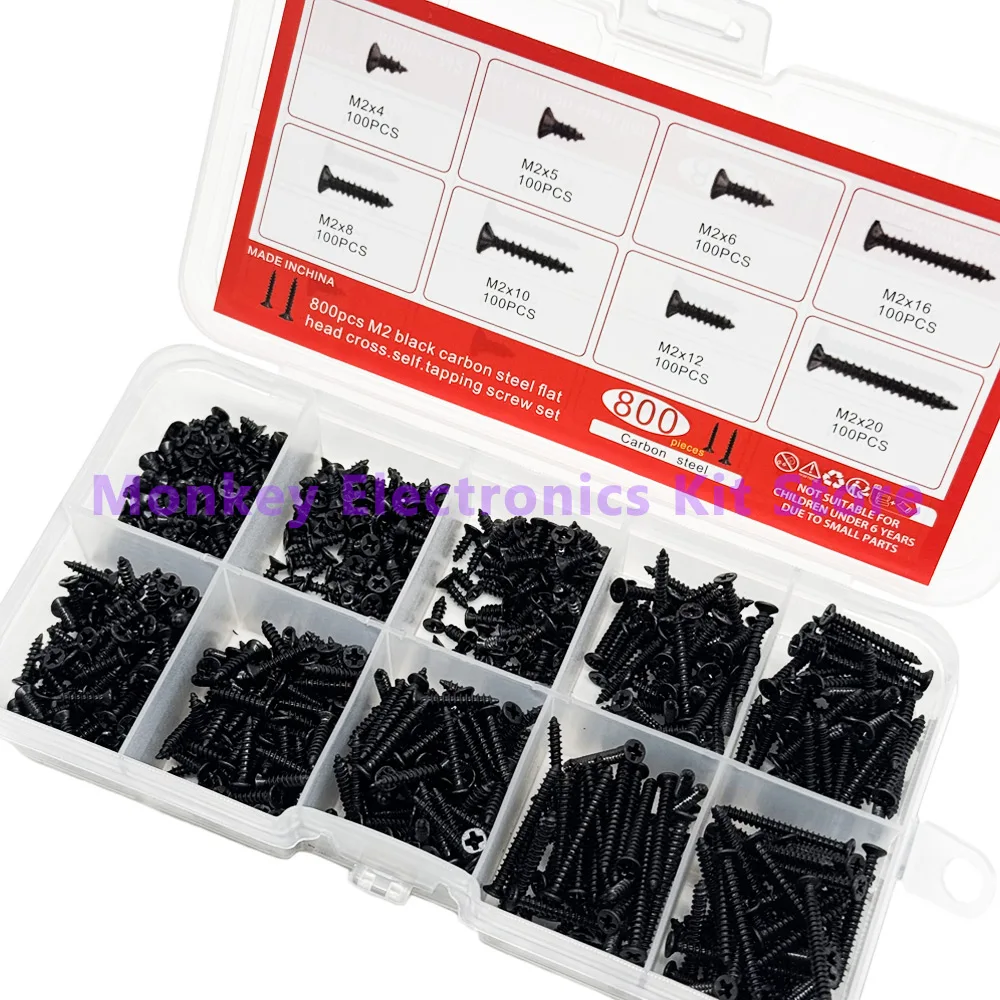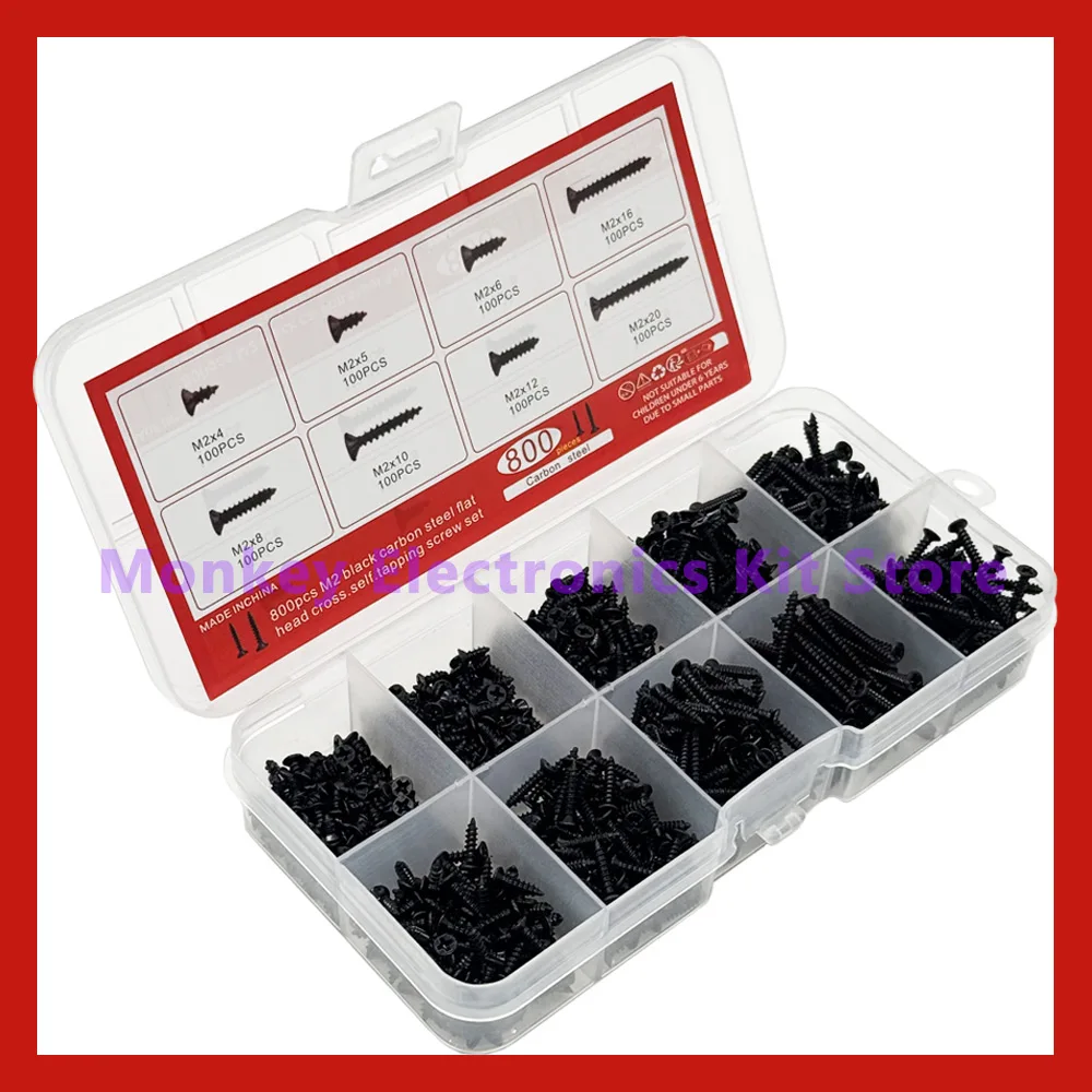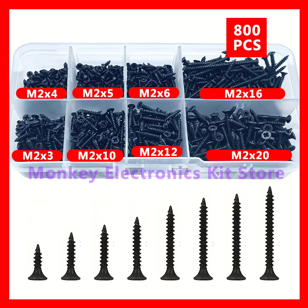 800PCS/1 Set M2 Black Phillips Self Tapping Screws
