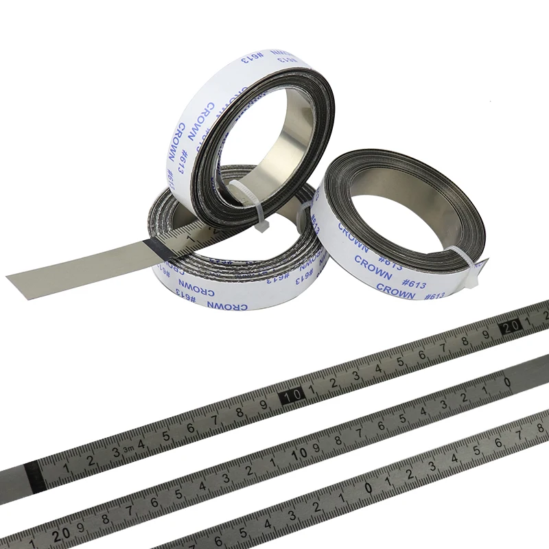 √ 1/2" (13mm) wide, self-adhesive tape, precision steel rule is flat with permanent adhesive back .